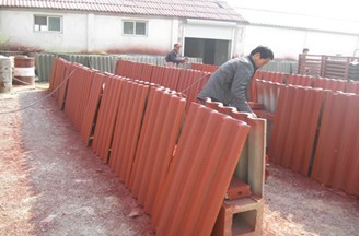 【水泥彩瓦机】水泥大瓦机940*640属于特大型模压水泥彩瓦机,可生产大尺寸水泥彩瓦,是郑州中盛机械根据市场实际需求,加速技术攻关,研发制造出的全自动大瓦机产品。该机继承了我公司全自动大瓦机系列产品的众多优点,并独具自身特色。水泥大瓦机的研制成功开创了彩瓦机发展的新纪元,标志着郑州中盛机械在彩瓦机技术研发和制造实力等方面的跨越式发展,同时丰富的水泥彩瓦的应用选择。 特大型水泥彩瓦机一机多用,瓦模切换快捷,傻瓜式操作、低功耗,数控模压成型。独特的外观设计,人性化的界面操作,先进合理的布局,填补了国内空白;制品密度大,强度高,品种多,更换模具可生产各种各样的精品瓦,是混凝土制品中的精品。